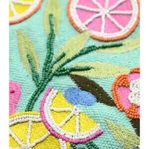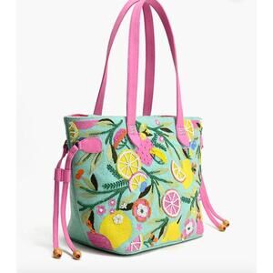 Embrace the spirit of the season with our Citrus Blueberry Infusion Tote. This fully hand embellished Tote Bag with its delightful lemon and blueberry infusion really refreshes you!