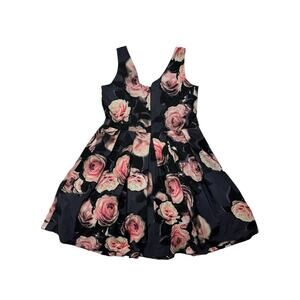 CITY CHIC Black Pink Rose Floral Fit & Flare Party Dress Size Medium 18 Plus