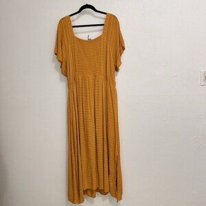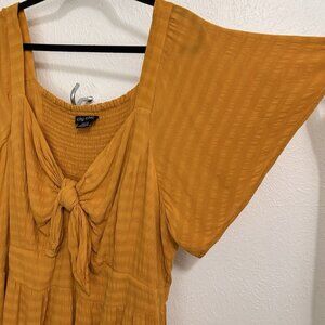 CITY CHIC MAXI DRESS RUCHED TIE CHEST MUSTARD YELLOW GAUZE PLUS SIZE XXL / 24