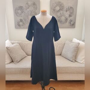 AN104 (tags: classic, classy, little black dress, lbd, cocktail, A-line, midi dress, evening, dinner, party, timeless, elegant, knee length, elbow sleeve, 3/4 sleeve, long sleeve, plus size, tea length, cute girl, women's, NWT)