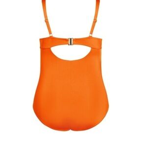 “Dive straight into summer with the Majorca 1 Piece in sunny Sunburst Orange colorway. Finding the balance between fashionable and functional, this swimsuit flaunts a plunging neckline, and under bust cut out detail, complimented by molded cups, adjustable straps and a full coverage brief.