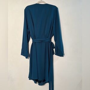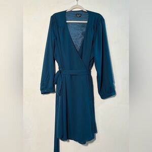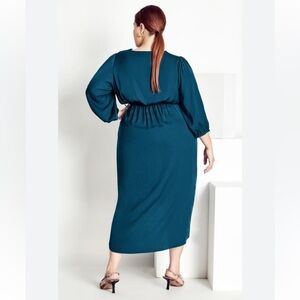 CITY CHIC Opulent Long SLV Teal Blue Wrap Career/Party Midi Dress SZ XL/22
