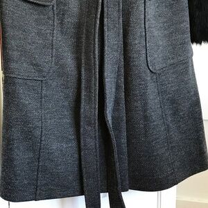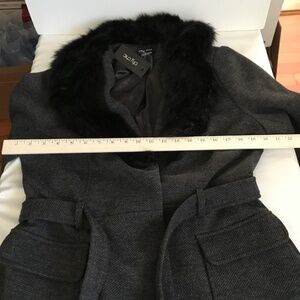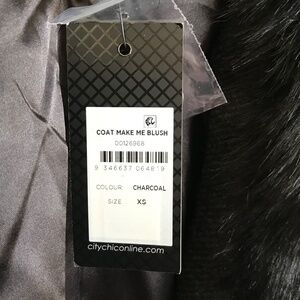 CITY CHIC Penny Lane Make Me Blush Coat Faux Fur Trim Black Gray Plus Size 14