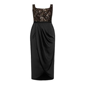 Sparkle the night away in the decadent design of our unforgettable Sequin Bodice Dress. Featuring a square neckline, sequin embellishments and a luxe satin drape skirt, be 100% red carpet ready in this divine midi dress.