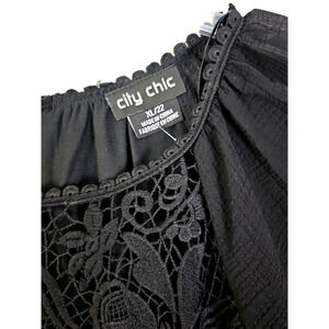 CITY CHIC ~Woman Size XL/22~ Black Lace Breeze Top Blouse Short Sleeve Balloon.