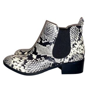 CITY CLASSIFIED Chelsea Snake Embossed Print Black & White Booties Size 7.5