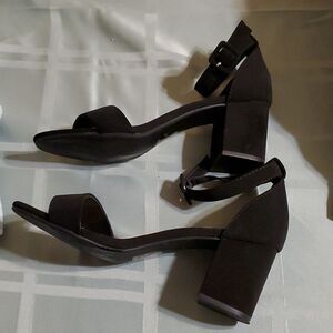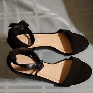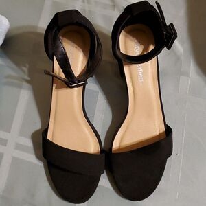 CITY CLASSIFIED open toe low chunky buckle heel sandal 7 1/2