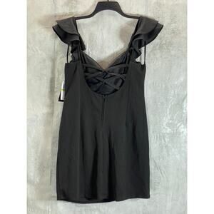 CITY STUDIO Juniors' Black Ruffle Cap-Sleeve X-Back Sheath Mini Dress SZ 17