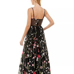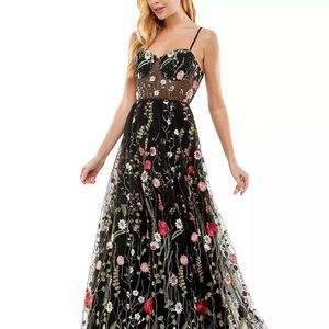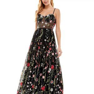 Blooming with a field of embroidered flowers and trimmed with an alluring mesh inset, City Studios' gorgeous ball gown brings beauty to every event.