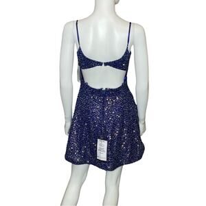 CITY STUDIO Juniors' Sequin Open-Back Fit & Flare Dress Royal Blue Sz 3/4