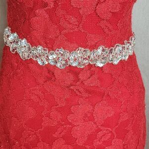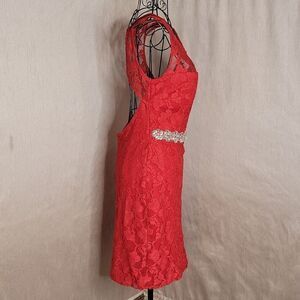 City Studio Red and Silver Lacey Sequined Dressy Dress