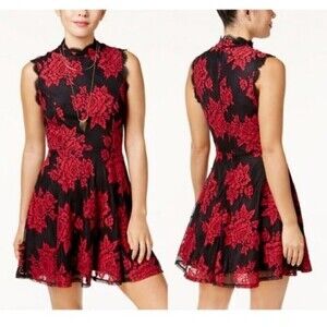 CITY STUDIO | Valentines Red Floral Sleeveless Short Fit & Flare Dress