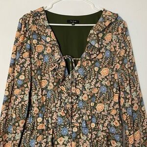 CITY STUDIO Womans Ruffle V neck Multicolor Dress Tiered Ruffle Long Sleeve XXL