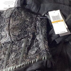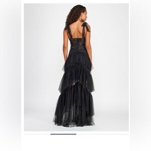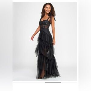 A subtly sparkled corset top lends a chic style to this City Studios gown, whilst a layered skirt adds a an edgier finish. Imported