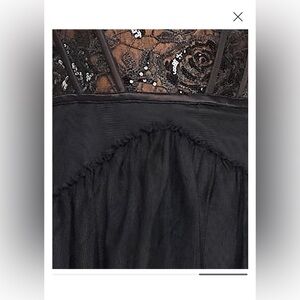 • Sequin-mesh structured corset; layered charmeuse skirt