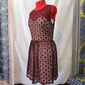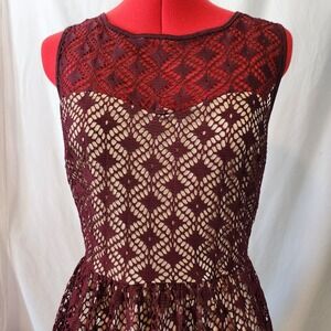 CITY TRENDS Maroon Lace with Creme Brown lining Sleeveless Dress Size 11