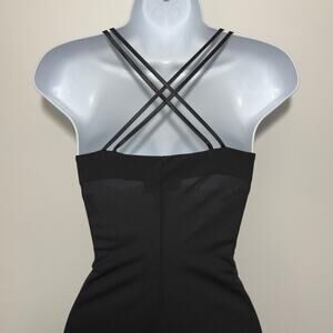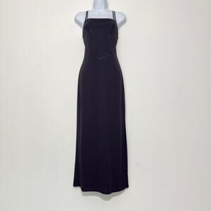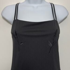 CITY TRIANGLES Vintage 90s Y2K Sexy Embroidered Black Double Strap Dress