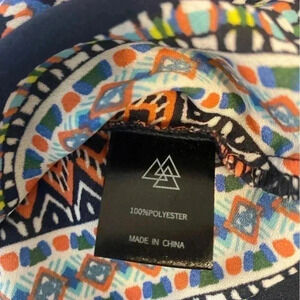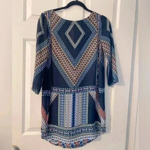 CITY Triangles Tribal Mini Shift Dress 3/4 Sleeve with Keyhole Button Size Small