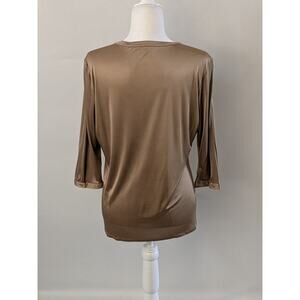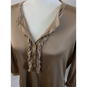 CITY UNLTD Toffee Gold Ruffle V-neck Long Sleeve Blouse SZ XL