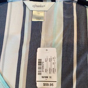 CJ BANKS Blue/white Stripped Dress 1X NWT