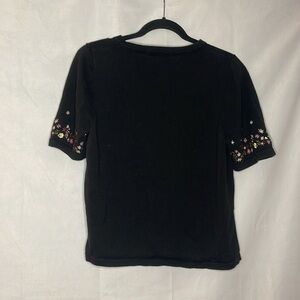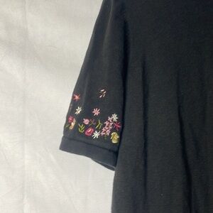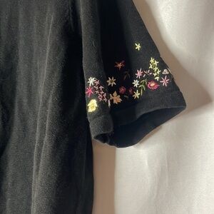 STYLE: CJ Banks vintage short sleeve button up sweater top, embroidered flower detail on sleeves, has shoulder pads can be easily removed as well, good quality