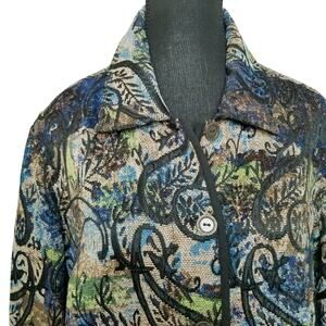 CJ Bank Tapestry Button Up Blazer Jacket Multicolor Reversible Artsy Boho Size L