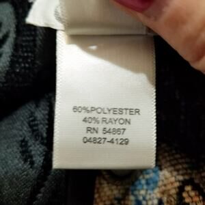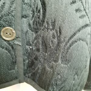 CJ Bank Tapestry Button Up Blazer Jacket Multicolor Reversible Artsy Boho Size L; Material - 60% Polyester, 40% Rayon; Care - Machine Wash Cold, Line Dry; Made in China; Button up Front, Colors - Beige, Blue, Black, Green, Brown, Long Sleeves, No Pickets, No Shoulder Pads, Pointed Collar,