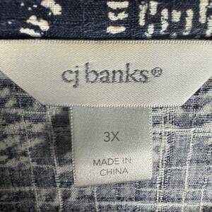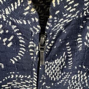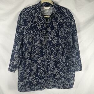 CJ Banks 100% Cotton Sz 3X Navy White Calico Paisley 3/4 Sleeve Full-Zip Jacket
