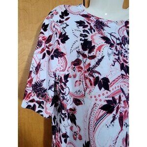 CJ Banks 14 Women's Button Up Floral Sweater X short sleeves Cotton knit EUC