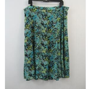 CJ Banks 1X Blue Green Floral Print Midi Knee Length Skirt Plus Size Women's