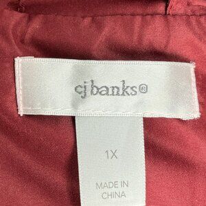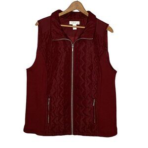 CJ Banks 1X Red Quilted Full Zip Front Ribbed Knit Sides Puffer Vest Jacket Plus
