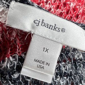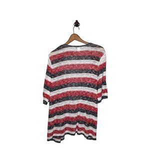 CJ Banks 1X Red White Blue Striped Lightweight Knit Open Front Cardigan Sweater