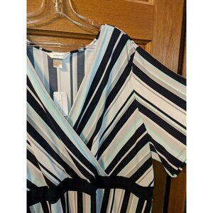 CJ Banks Black Gray Multi Striped Stretch Women Dress. Size 3X NWT
