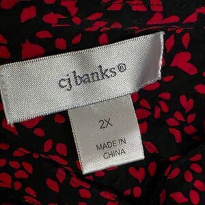 CJ Banks Black Red Floral Button Front Blouse 2X
