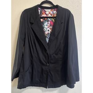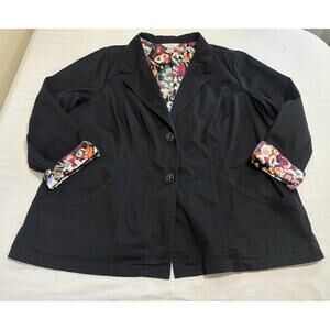 CJ Banks Blazer Jacket Women’s 2X Black Two Button Stretch Floral Cuff Office