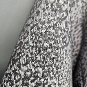 Item: Womens open-front blazer jacket in gray/black leopard-print jacquard.