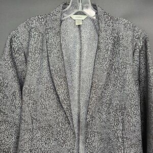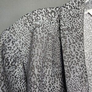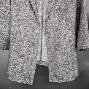 CJ Banks Blazer Jacket Womens 2X Gray Black Leopard Print Open Front 3/4 Sleeve