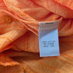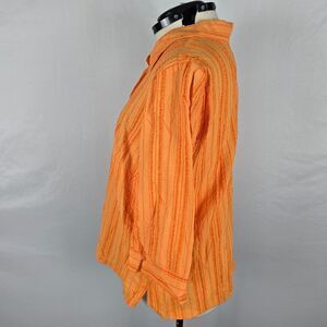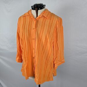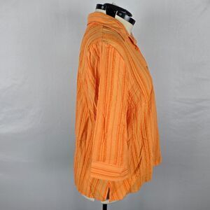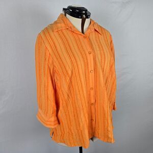 CJ Banks Blouse Women's 1X Orange Striped Button Down 3/4 Sleeve Collar NWT