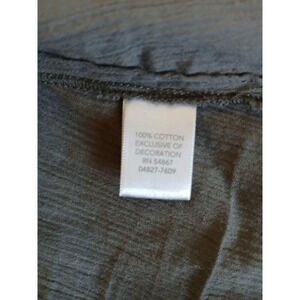 This CJ Banks blouse is a must-have for any woman's wardrobe. The green olive color is perfect for any occasion, whether it's a casual day out or a fancy party. Made from 100% cotton knit fabric, this lightweight and breathable blouse is perfect for all seasons.