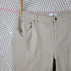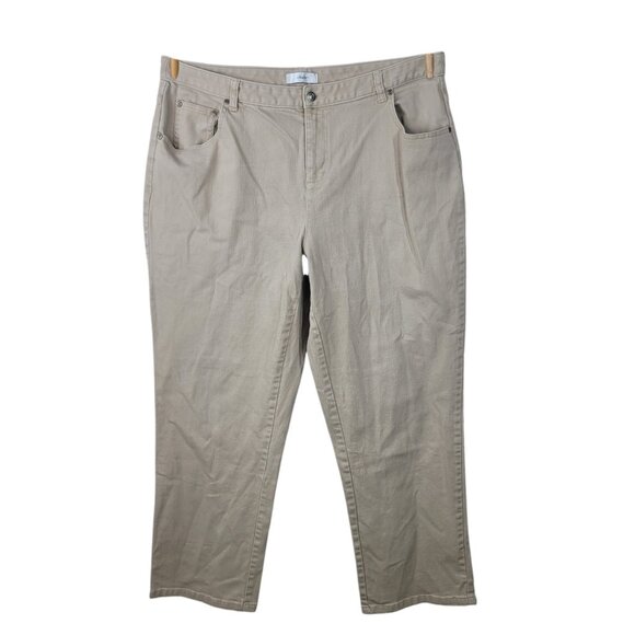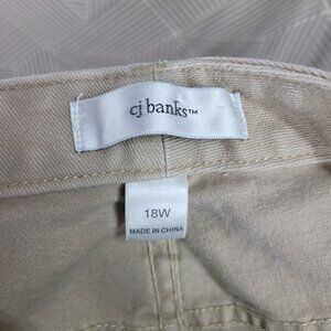 CJ Banks Boot Cut Pants Plus Size 18W 18 38" Waist Khaki Tan Beige Denim Canvas