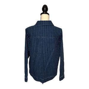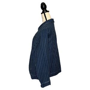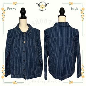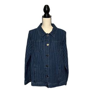 CJ Banks Button Up Engineer Stripe Jean Jacket Blue Pinstripe Size XL Pockets