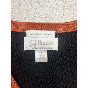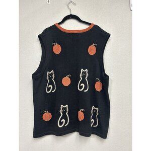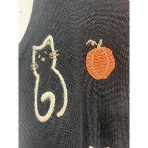 C.J. Banks By Christopher & Banks Hand Embroidered Cats & Pumpkins Vest 1X (XL)
