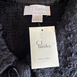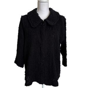 CJ Banks Cardigan Jacket Size X/14W Black Boucle' Collar Nubby Knit Sweater NWT