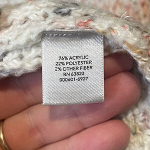 CJ Banks Cream Grey Coral Soft Cardigan Sweater Open Front Knit Crochet Acrylic