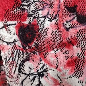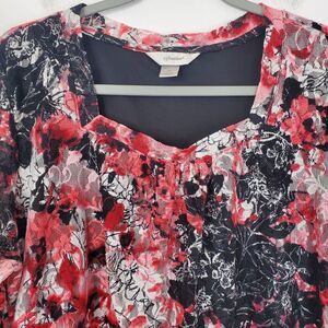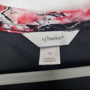 CJ Banks Dark Floral Blouse All Over Maximalist WOmens 1X Mesh Sheer Sleeves
