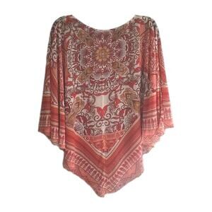 CJ Banks Established 1962 Red Floral Semi-Sheer Poncho Cape Top Womans Plus 2X