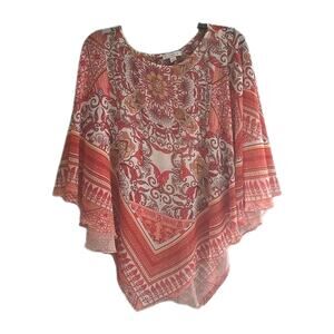 Cj banks Red Floral Semi-Sheer Poncho Cape Top Womans Plus Size 2X. Pre-owned