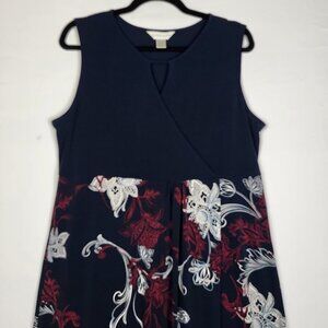 CJ Banks Faux Wrap Dress Blue Floral Women's Large Stretchy Maxi Boho Comfort