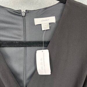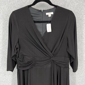 CJ Banks Faux Wrap Dress Size 1X Black Ruched Waist Half Sleeve Stretch Knit NEW