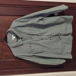 CJ Banks Green Button Down Shirt Jacket Shacket Size 3X